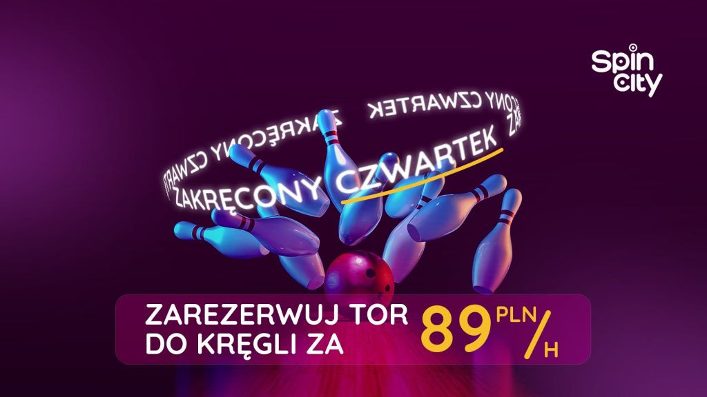 Spin City to świat nowoczesnej rozrywki. Znajdziesz tu 10 torów do gry w kręgle, 8 stołów bilardowych, automaty do gier video, darty, a przede wszystkim dobrą zabawę przy imprezowej muzyce.