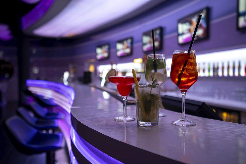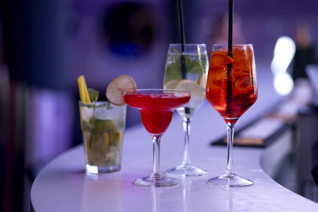 dostępne gigakoktajle: Cosmpolitan, Mojito, Tequila Sunrise, Blue Whale, Sex On The Beach, Kamikadze
